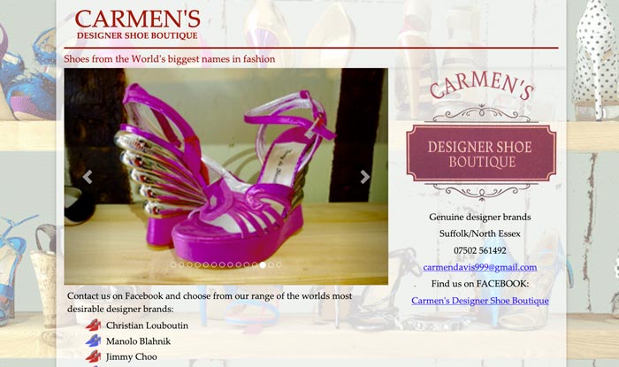A passion for shoes deserves a site that reflects that enthusiasm. Even with a limited budget this single-page site speaks volumes about the owners business and drives traffic to her Facebook page.