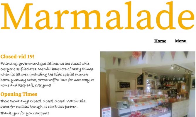 An effective 2-page site for this strongly branded coffee shop. The menu is easy to edit using the CMS and can be printed on A5 paper for insertion in standard perspex table menu stands - saving time, print costs and managing customer expectation by ensuring that the website and table menus always give the same prices.