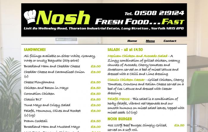 Norfolk Nosh is a sandwich shop and café serving both take-away and eat-in customers. The powerful branding from the website is reflected consistently throughout, from their shopfront to the menus and even their furniture, giving them a powerful identity that serves them well - and of course they serve excellent food!